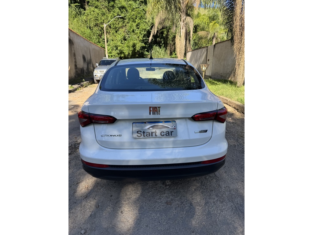Fiat Cronos Drive 1.0 6V Flex 2024FICHA TÉCNICA (BASE FÁBRICA)Motorização e desempenhoMotor: 1.0 6V, 3 cilindros em linhaCombustível: Flex (etanol e gasolina)Cilindrada: 999 cm³Potência: 75 cv (etanol) / 71 cv (gasolina) a 6.000 rpmTorque: 10,7 kgfm (etanol) / 10 kgfm (gasolina) a aproximadamente 3.250 rpmAspiração: NaturalAlimentação: Injeção eletrônica multipontoCâmbio e traçãoCâmbio: Manual de 5 marchasTração: DianteiraDesempenho0 a 100 km/h: aproximadamente 15,3 sVelocidade máxima: aproximadamente 162 km/hConsumoCidade:9,6 a 9,9 km/l (etanol)13,6 a 14,0 km/l (gasolina)Estrada:10,6 a 11,4 km/l (etanol)15,1 a 16,1 km/l (gasolina)(pode variar conforme condições de uso)Estrutura e mecânicaDireção: ElétricaSuspensão dianteira: Independente tipo McPhersonSuspensão traseira: Eixo de torçãoFreios:Dianteiros: discos ventiladosTraseiros: tamborDimensões e capacidadesComprimento: 4.364 mmLargura: 1.726 mmAltura: aproximadamente 1.508 a 1.510 mm (pode variar conforme fonte)Entre-eixos: 2.521 mmPorta-malas: 509 a 525 litros (pode variar conforme medição/fonte)Tanque de combustível: 47 a 48 litros (pode variar conforme versão)Peso: aproximadamente 1.139 kgObservaçõesVersão Drive 1.0 é a opção de entrada da linha CronosDados podem variar conforme lote, mercado e critérios de medição